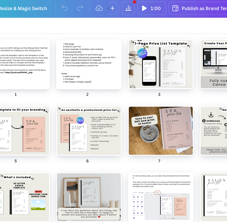 Bonus Canva templates so you don't need to create your listing photos from scratch (totalling 80+ pages in Canva)